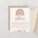 Dé tu consejo a esta futura mama con esta tarjeta de consejo de ducha de personalizable. Presenta una Linda Tematica estilo boho con un lindo arcoiris y vegetacion en tonos cafe. Personalice esta tarjeta de consejo para baby shower su propio texto. Esta tarjeta de consejo floral es perfecta para un baby shower de niño o niña