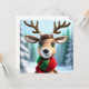 Scène hivernale avec un mignon renne portant une écharpe.