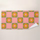 Cute Retro Hippie Flower Checkerboard en rose et vert ensemble de serviettes de bain