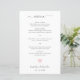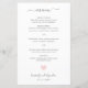 Menu mariage moderne avec un design simple avec le texte en gris clair avec le mot "menu" dans une police d'écriture élégante. En bas, un coeur rose pastel avec vos noms et votre date. Ces menus mariages bon marché au design mignon sont un complément amusant à votre réception et sont imprimés sur des feuilles de papier pour une option économique.