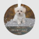 Joli Chien Rustique Puppy Snowflake 2 Photo Christmas Keepsaké Ornement avec Snowflakes. De mignons flocons blancs de différentes formes et tailles superposent des photos à l'avant et à l'arrière. L'arrière - plan est en bois foncé. Ajoutez 2 photos de chien - ajoutez une photo de votre chien comme un chiot sur le devant et comme un chien adulte sur le côté arrière et changez les numéros d'année ou effacez-la. Vous pouvez ajouter la photo de n'importe quel animal de compagnie. Créez votre propre ornement de Noël.