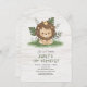 Cette mignonne invitation de lion safari est idéale pour un 1er anniversaire mais peut être adaptée à toute occasion. Dispose d'une aquarelle graphique et d'une typographie simple dans un style neutre de genre, avec un graphisme texturé en bois dans l'arrière - plan pour donner une finale rustique.