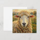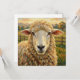 A cute notecard with a cute ewe pun with an adorable impasto style sheep on an old rustic farm looking at you. The back side is blank.