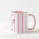 Brighten someone's morning with this adorable "Silly Goose" personalized mug! Featuring a whimsical hand-drawn goose in yellow rain boots and a pink bow, this design is set against a classic baby pink and white vertical stripe background.