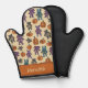 Ajoutez une touche mignonne à n'importe quelle cuisine cette Halloween avec ce gant de four qui est prêt à être personnalisé avec un nom. Il présente un motif de mignons animaux farcis avec une partie de leurs squelettes montrant avec des citrouilles de style patchwork.