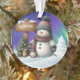 Cute snowman on North Pole with northern lights