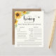 Diseño para juego de predicciones del bebe con una Hermosa Tematica de Flores de Girasol y abejas con la Frase " A LITTLE HONEY IS ON THE WAY". con linda tipografia en color negro y un fondo amarillo claro es ideal para recibir a esa trozo de miel que viene en camino!. Este es un juego perfecto para jugar durante el baby shower y sin duda será un gran placer. La tarjeta pide a los invitados que predigan cómo sería el bebé.