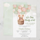 Celebrate the upcoming arrival of Baby Elizabeth with this adorable teddy bear baby shower invitation. Featuring a sweet bear in a wicker basket lifted by pastel balloons against dreamy clouds, this design adds charm and warmth to your special event. Perfect for honoring Carolina Anderson, this customizable card includes event details, RSVP information, and registry notes. A delightful choice for parents-to-be who want a whimsical and memorable baby shower keepsake.