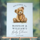 Joli blanc simple aquarelle petit ours en peluche bleu garçon baby shower acrylique signe d'accueil dans un style moderne aquarelle minimaliste. Simple et capricieux.