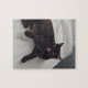 Un mignon chat en coquille de tortue posé sur le lit, léchant son nez, est imprimé sur des puzzles de scie. Merci pour faire du shopping à CherylsArtPhotos sur Zazzle.