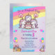 Adorable invitation magique d'anniversaire de licorne. Arc-en-ciel brimmer arrière - plan avec les licornes actuelles et gâteau d'anniversaire.
