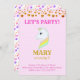 Cute Unicorn Invitation Anniversaire. Belle tête de pois doré, licorne avec trois couleurs arc-en-ciel et motif étoile sur arrière - plan rose. Le côté arrière a des pois multicolores et le numéro 3 dans une étoile. Tous les textes et numéros peuvent être personnalisés.