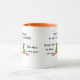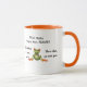 Tasse à deux tons (orange et blanc) avec grenouille mignonne qui complique la température du café et du buveur. Parfait comme cadeau d'anniversaire ou cadeau de Saint Valentin pour quelqu'un de spécial. Tout le texte est personnalisable.