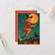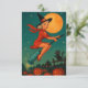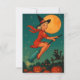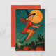 Cute Vintage Halloween Girl Witch Riding A Broom Holiday Card.