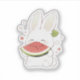This adorable white bunny is happily enjoying a juicy slice of watermelon 🍉🐰💖. With its cheerful expression and kawaii style, this sticker brings a fun and refreshing summer vibe.
