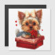 Cute yorky coeurs et roses. Fête des mères. Saint Valentin Boîte rouge yorshire terrier