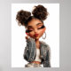 A striking editorial portrait featuring a confident glam girl in pearl‑denim couture. Her bold gaze and luxe styling make this the perfect accessory for fashion lovers and creatives.
