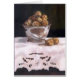 Une peinture à l'huile dans le style néerlandais dépeignant des noix dans une cuvette argentée sur une nappe de coupe-work.