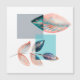 Design moderne avec carré et feuille dans des tons cyan, rouge et orange contrastés.