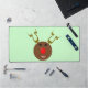 Ce somptueux tapis de bureau présente un drôle de dessin animé d'un Reindeer. Il a les yeux noirs et un énorme nez rouge vif et brillant. Les bois pointent vers le haut et semblent futuristes faisant de ce renne un cyber renne. Il est toujours mignon et amical.