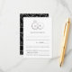 Un monogramme moderne obtient du glam avec des anneaux de mariage en argent entrelacés et un texte personnalisé, ce qui en fait un nouveau faire-part de mariage classique avec du texte simplifié en noir et blanc propre. Personnalisez tout le texte de cette carte de réponse d'invitation pour une carte d'enceinte personnalisée avec les informations de choix de repas pour vos invités.