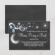 Une façon idéale de demander à vos invités d'apporter un livre à votre prochain baby shower ! Vers la lune et le dos, avec des détails bleus sur un arrière - plan noir.