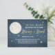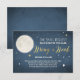 Une façon idéale de demander à vos invités d'apporter un livre à votre prochain baby shower ! Vous aimez la lune et le thème du dos. Détails de couleur or sur un arrière - plan bleu foncé.