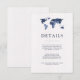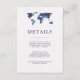 Cette carte d'information chic et moderne pour les invités de mariage présente un fond blanc avec un aspect papier aquarelle et une carte du monde en aquarelle bleue tendance avec un texte assorti. Parfait pour le mariage de tout couple qui aime voyager, ou pour quiconque organise un mariage de destination. Vous pouvez utiliser ces cartes pour inclure des informations sur votre réception de mariage, les directions pour se rendre au lieu, les hébergements, et tout ce que vous voulez que vos invités sachent !