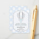 Bébé pois bleu et blanc avec montgolfière aux accents argentés à l'aspect parties scintillant apportent un design de carte de livre pour un baby shower garçon.