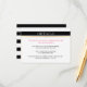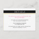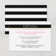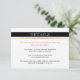 Bande blanche noire or, rose chaud détails du mariage insérer carte. Cette carte de détails mariage chic présente une bande noire sur le dessus et votre libellé dans une bande blanche avec une bande dorée. Le texte est rose et noir. Un motif rayé noir et blanc recouvre le dos de la carte.