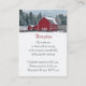 Cette carte d'encart de réception de mariage d'hiver sereine a une scène enneigée avec une grande grange en bois rouge et des collines vertes enneigées et des arbres sur elle. Un petit cheval marron est visible derrière la clôture en bois qui correspond au faire-part de mariage ci-dessous. Ajoutez vos coordonnées de réception ou d'autres informations, ou changez le texte pour en faire une carte de registre cadeau ou une carte de puits de souhaits. Parfait pour un mariage campagnard rustique décontracté ou informel. Il est présenté ici sur papier de base. ****VEUILLEZ NOTER que tout va s'imprimer tel qu'il apparaît sur votre écran, donc si vous avez des problèmes de typographie, d'alignement ou de dimensionnement, veuillez me contacter pour obtenir de l'aide AVANT de commander. Si vous avez besoin d'autres articles correspondants, envoyez un courriel à niteowlstudio@gmail.com.