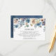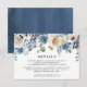 Cartes d'insertion de mariage élégantes et stylées avec une bordure supérieure de fleurs et de verdure aquarelles blanches, beige et bleues. Personnalisez la carte en ajoutant des informations importantes telles que les hébergements d'hôtel, le site web du mariage, les directions, etc.