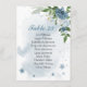 fleurs bleues et blanches romantiques avec une jolie carte mariage feuille verte.