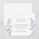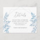 Cette carte de détails mariage moderne comporte une bordure géométrique élégante, des feuilles d'eucalyptus bleus poussiéreux et une police de caractères romantiques. Découvrez d'autres objets de la collection "Blue Eucalyptus".