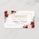 Watercolor Floral Bourgogne et Gold Wedding Réception Boire Carte Billet - Burgundy Back - Burgundy et Gold Script
