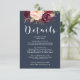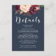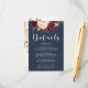 Dreamy rencontre rustique avec cette carte de détails mariage marine et bordeaux fleuris. Ajoutez votre propre libellé au modèle. Cette carte fait partie de notre gamme "Amelia & Ryan" - consultez la gamme complète dans notre magasin!