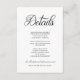 Carte de détails élégants classiques avec une police de caractères décorative qui accentue cette carte et son schéma de couleurs minimaliste. Conception simple et efficace souvent sous-estimée en noir et blanc. Venez voir toutes les collections dans notre magasin pour une expérience de mariage complète.