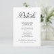 Carte de détails élégante classique avec une police de caractères décorative qui accentue cette carte et son schéma de couleurs minimaliste. Conception simple et efficace souvent sous-estimée en noir et blanc. Venez voir toutes les collections dans notre magasin pour une expérience de mariage complète.
