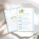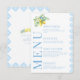 Améliorez le charme de votre soirée mariage italienne à thème méditerranéenne avec cette carte raffinée et polie. Doté d'un carrelage bleu clair complexe orné de délicates branches de citron ornées de fleurs bleues blanches, ce bel aménagement est surélevé par la personnalisation, mettant en valeur les noms de la mariée et du marié à l'arrière.