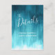 Wedding reception enclosure card is part of the matching modern teal painted wedding collection. Idéal to use as a wedding information card after the ceremony, or a card to carcard to keep you guest guest informed of the day and party ahead, donc can be used a gift registry card, or accommodation or even a wishing well card, or a wedding card by changing the customable izable texte on the front and reverse. Original art moderne abstract painting and design by Sarah Trett for www.mylittleedenweddings.com on zazzle.