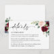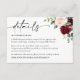 Boho Burgundy and Blush floral Mariage Détails Carte de boîtier. Cette Carte est caractérisée par des roses boho bordeaux et rougis et des fleurs avec deux polices de haute classe modernes qui façonnent les tendances des événements festifs actuels et futurs.