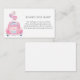 Carte d'insertion de demande de livre pour lecteur par baby shower ou baby shower par la poste. Avec une voiture rose aquarelle avec ballons et poème : "UNE PETITE DEMANDE, NOUS ESPÉRONS NE PAS TROP DIFFICILE ENVOYER OU APPORTER UN LIVRE AU LIEU D'UNE CARTE ILS CHERCHERISERONT LE LIVRE, BIEN AIMÉ OU NOUVEAU S'IL VOUS PLAÎT SIGNER L'INTÉRIEUR AVEC UN MESSAGE DE DE VOUS!"