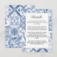 Cette carte de boîtier mariage s'inspire du carrelage bleu et blanc qui parcourt les villes méditerranéennes à travers l'Espagne, l'Italie et la Grèce.
