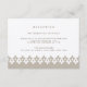 Conçue pour coordonner avec nos invitations de mariage et d'événement Arabesque, cette carte de réception élégante et luxueuse dans des tons champagne et beige présente une bordure géométrique inspirée du Maroc en bas. Ajoutez vos informations de réception de mariage comme l'heure, le lieu, l'adresse et les détails de stationnement ou de transport en beige-gris. Nous recommandons d'imprimer ce style sur le papier Champagne Shimmer pour une finition lumineuse.