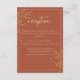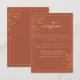 Cette carte de réception de mariage moderne, simpliste, de style boho terreux, présente de beaux feuilles dorés, ainsi qu'une combinaison d'écriture et de lettrage simpliste. Vous pouvez customiser ce design avec vos propres détails de réception de mariage.
