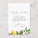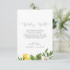 Ce jardin de citrons moderne qui souhaite une bonne carte est parfait pour un mariage de printemps ou d'été. Le design méditerranéen rustique présente de beaux citrons aquarellés aux fleurs blanches bohème et d'élégants feuilles verts. Personnalisez cette carte d'invitation avec vos noms, et un court poème de bienvenue.