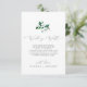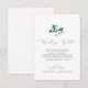Ce mariage de verdure boisée qui souhaite une bonne carte est parfait pour un été ou un mariage de automne. Le design boho moderne comprend des feuilles d'eau vert émeraude, sauge et olive luxuriants et des botaniques avec des sprigs de fleurs blanches élégantes. Personnalisez cette carte d'invitation avec vos noms, et un court poème de bienvenue.