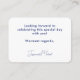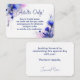 Présentation de la carte d'information Mariage de la Collection Cornflower Reverie, conçue avec élégance et fonctionnalité. Cette carte d'enceinte horizontale de 3,5 po x 2,5 po dispose d'un décor époustouflant, orné de fleurs de maïs délicates, créant une esthétique séduisante et magnifique. À l'avant, la légende "Adults Only" est affichée de manière visible dans une police élégante, assurant ainsi la clarté de tous les invités. Ci-dessous, il y a suffisamment d'espace pour tout texte supplémentaire, vous permettant de fournir des détails supplémentaires ou des instructions sur l'événement. L'arrière de la carte comporte un arrière - plan blanc propre avec du texte bleu foncé, offrant un espace supplémentaire pour toute information supplémentaire ou un message sincère du couple. Cette carte allie harmonieusement esthétique et fonctionnalité, s'harmonisant parfaitement avec l'atmosphère sereine et élégante de la Collection Cornflower Reverie. Cette carte de boîtier horizontale assure à vos invités tous les renseignements nécessaires tout en maintenant une présentation cohésive et élégante pour votre papeterie mariage.