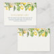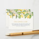 Coordonnez tous les détails essentiels de votre douche nuptiale avec ces cartes d'enceinte, avec le luxueux texte or et bleu marine qui contraste élégamment avec les tons plus clairs de l'aquarelle citron et motifs floraux. Ces cartes sont parfaites pour des informations supplémentaires comme l'itinéraire ou l'hébergement.