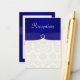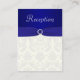 ****VEUILLEZ NOTER que le ruban et les bijoux sont des images imprimées et ne sont pas réels. Cette carte de réception en damas bleu et ivoire correspond à la faire-part de mariage et aux autres objets indiqués ci-dessous.